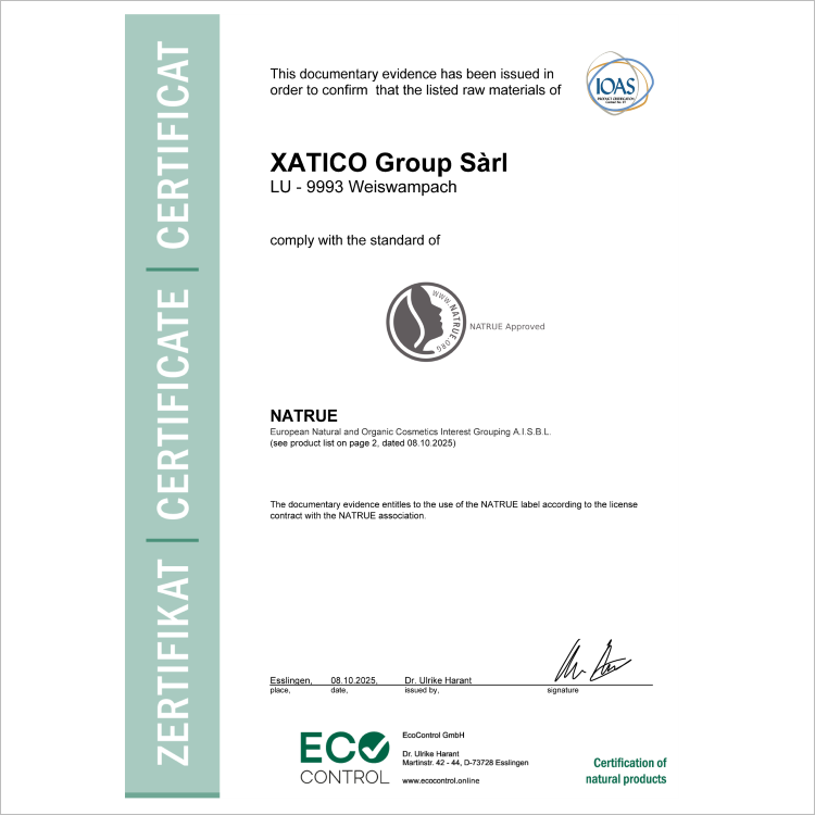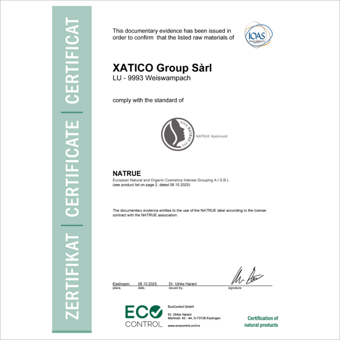 Wir sind stolz darauf, gemeinsam mit der XATICO Group hochwertige, zertifizierte Rohstoffe anzubieten, die Sie bei der Entwicklung innovativer und nachhaltiger Formulierungen unterstützen.